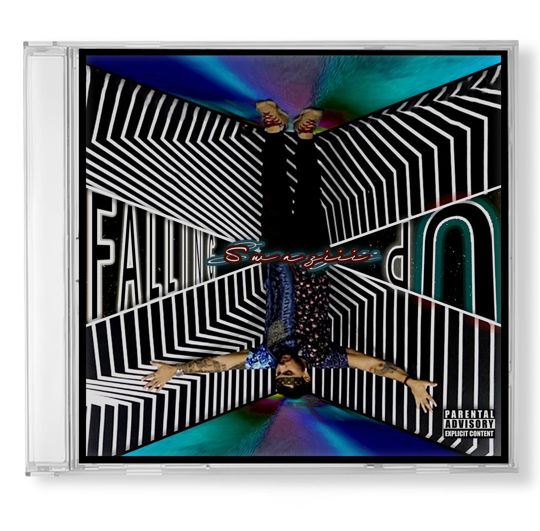 The cover design incorporates the idea of 'falling', but when the cover is rotated, both the artist and the word 'up' are in an upright position. The layout represents the artist's concept on shifting your perspective to change the trajectory of your life.