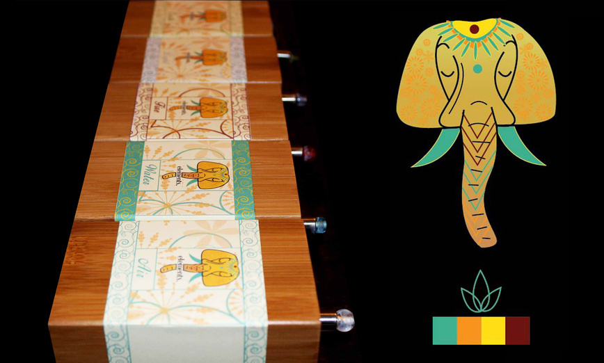 Custom logo and branding concept for a *mock herbal tea company. The selected brand name "Elements" references the components of the earth in relation to the tea's organic ingredients. The package design correlates the (5) tea flavors to each element. The brand name, label design, and logo were thoughtfully designed to appeal to the company's target tea-drinking ‘bohemian-inspired' consumer.